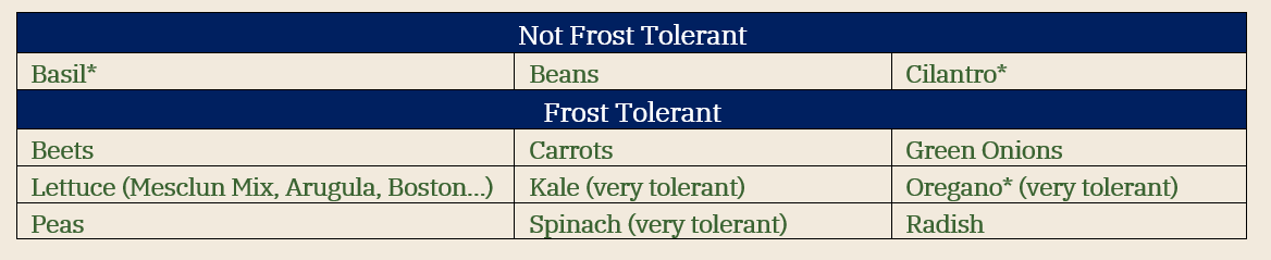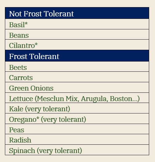 Some Herbs*, like Oregano, can be left out all winter and will return in spring, but most herbs tend to require a longer season but can be tried.